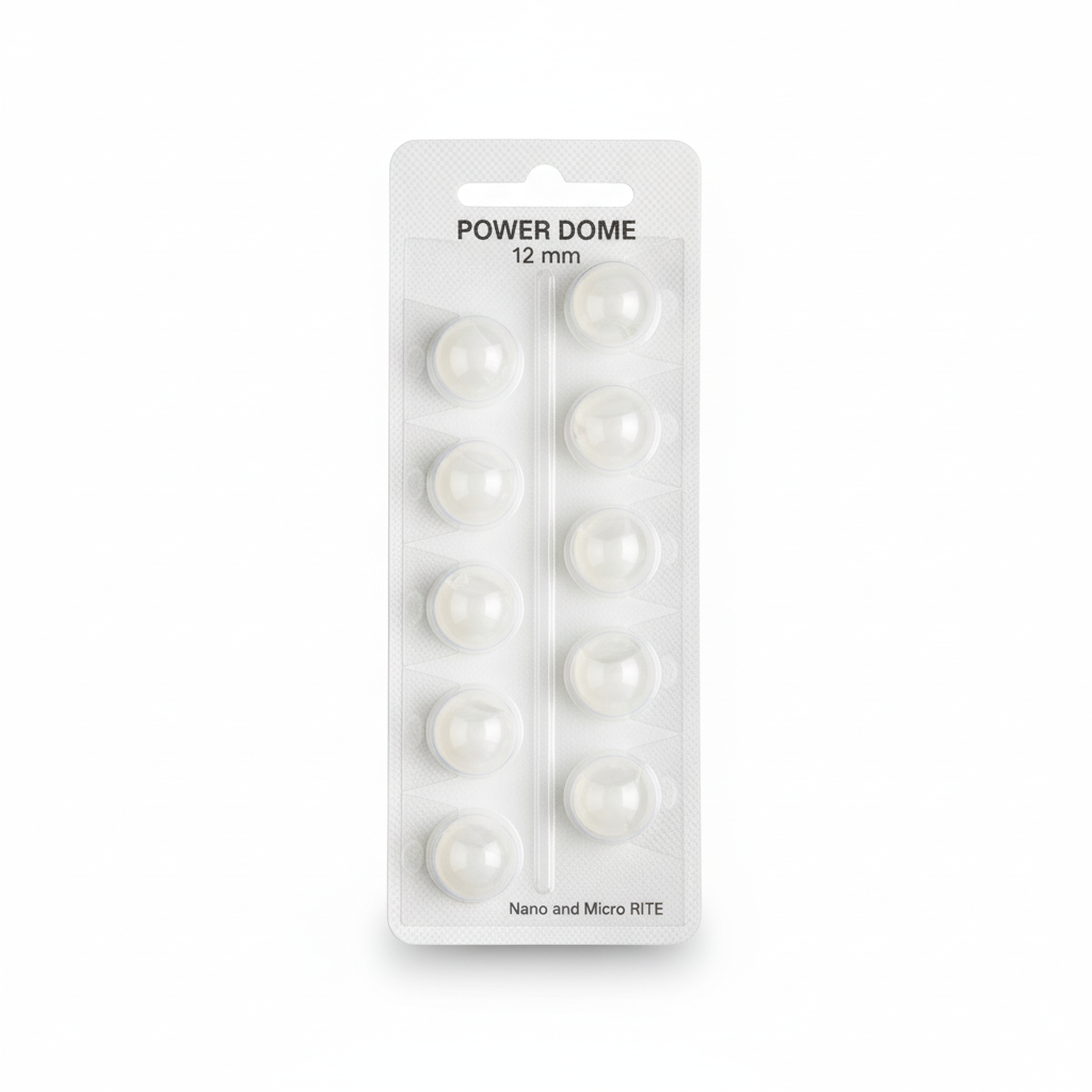 There are several different types of domes, and you can find the ones that suit you best. There are three types of domes: Bernafon RITE Open domes, Bernafon RITE Tulip domes, and Bernafon RITE Power domes. The open domes make a brighter sound and do not close the ear canal, so you avoid a clogged feeling in the ear. The tulip-shaped dome provides a more intense sound experience and better prevents squealing sounds, and the shape also allows the ear to be ventilated. The Power dome is equipped with a double slat and provides the most intense sound experience, where the bass sound comes into character. The three types of domes come in different sizes.