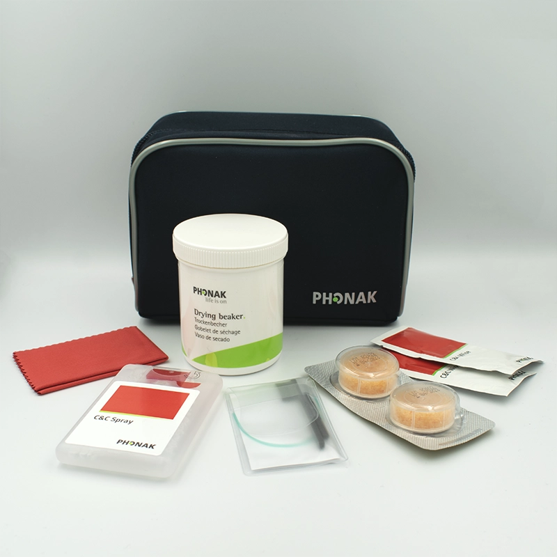 Phonak’s C&C Line offers a complete range of cleaning and maintenance products for our hearing aids. Daily maintenance and cleaning are necessary to protect modern hearing aids from sweat and dirt, ensuring their daily reliability.